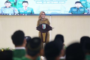 Bupati Pesawaran, Nanda Indira Bastian turut memberikan sambutan pada acara pelantikan Pimpinan Cabang (PC) Gerakan Pemuda (GP) Ansor Pesawaran dalam suasana yang penuh semangat kebangsaan dan kehitmatan yang dilaksanakan di aula Kantor Bupati Pesawaran, Senin (29/9/2025).